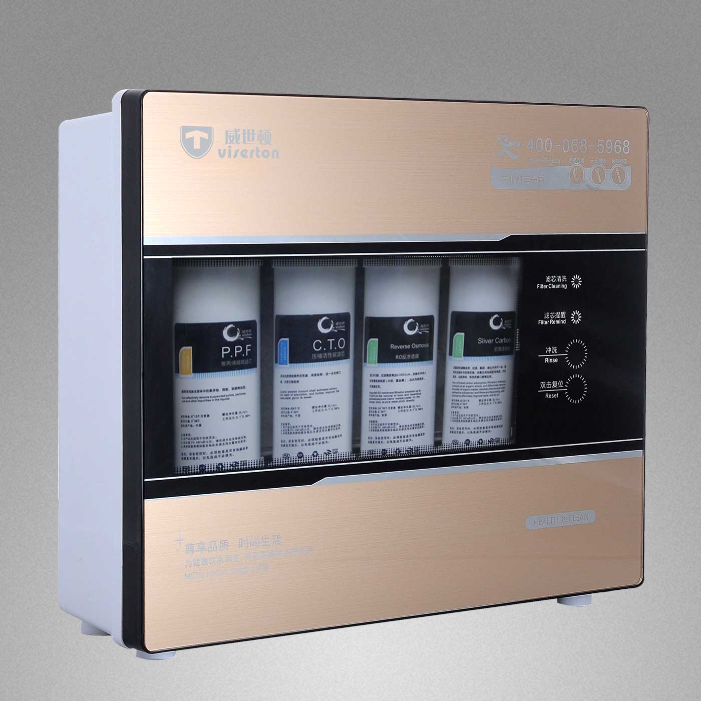 ●过滤工艺:5μmPP棉+进口椰壳烧结碳棒+陶氏RO膜+精密椰壳活性炭