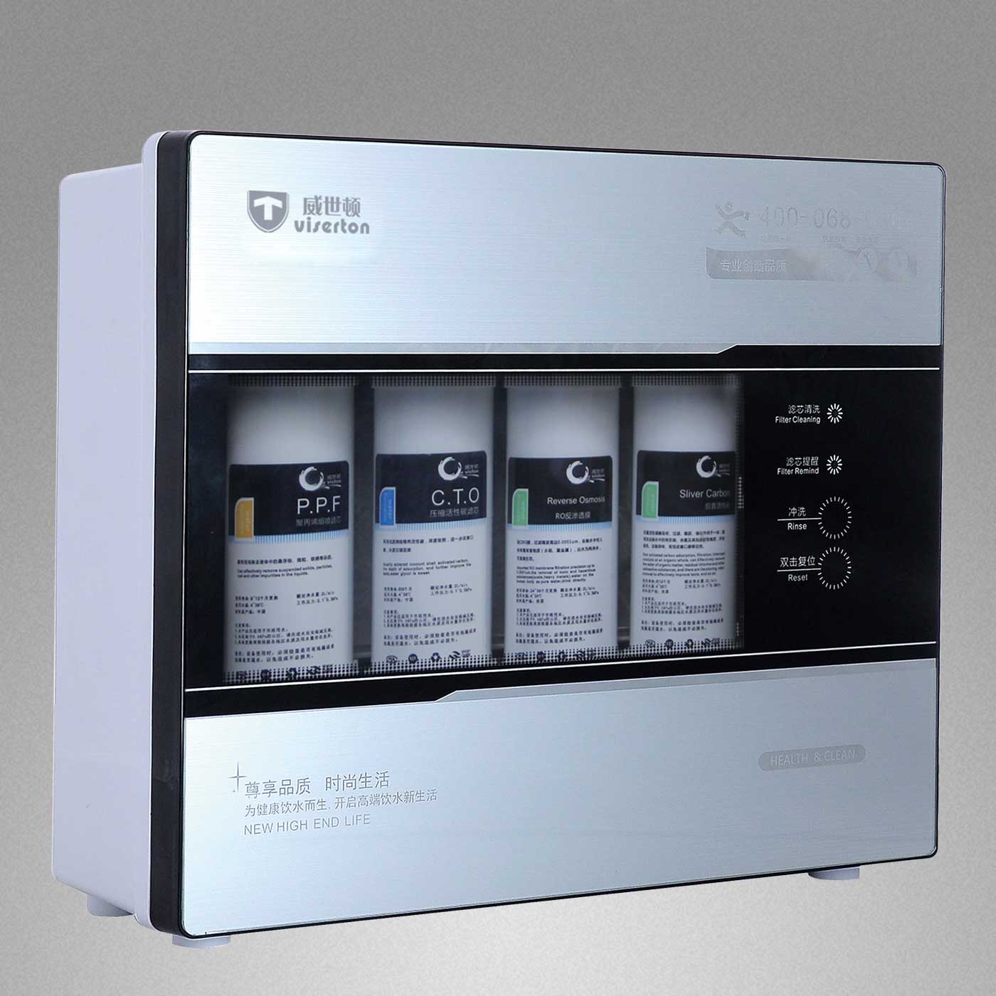 ●过滤工艺:5μmPP棉+进口椰壳烧结碳棒+陶氏RO膜+精密椰壳活性炭